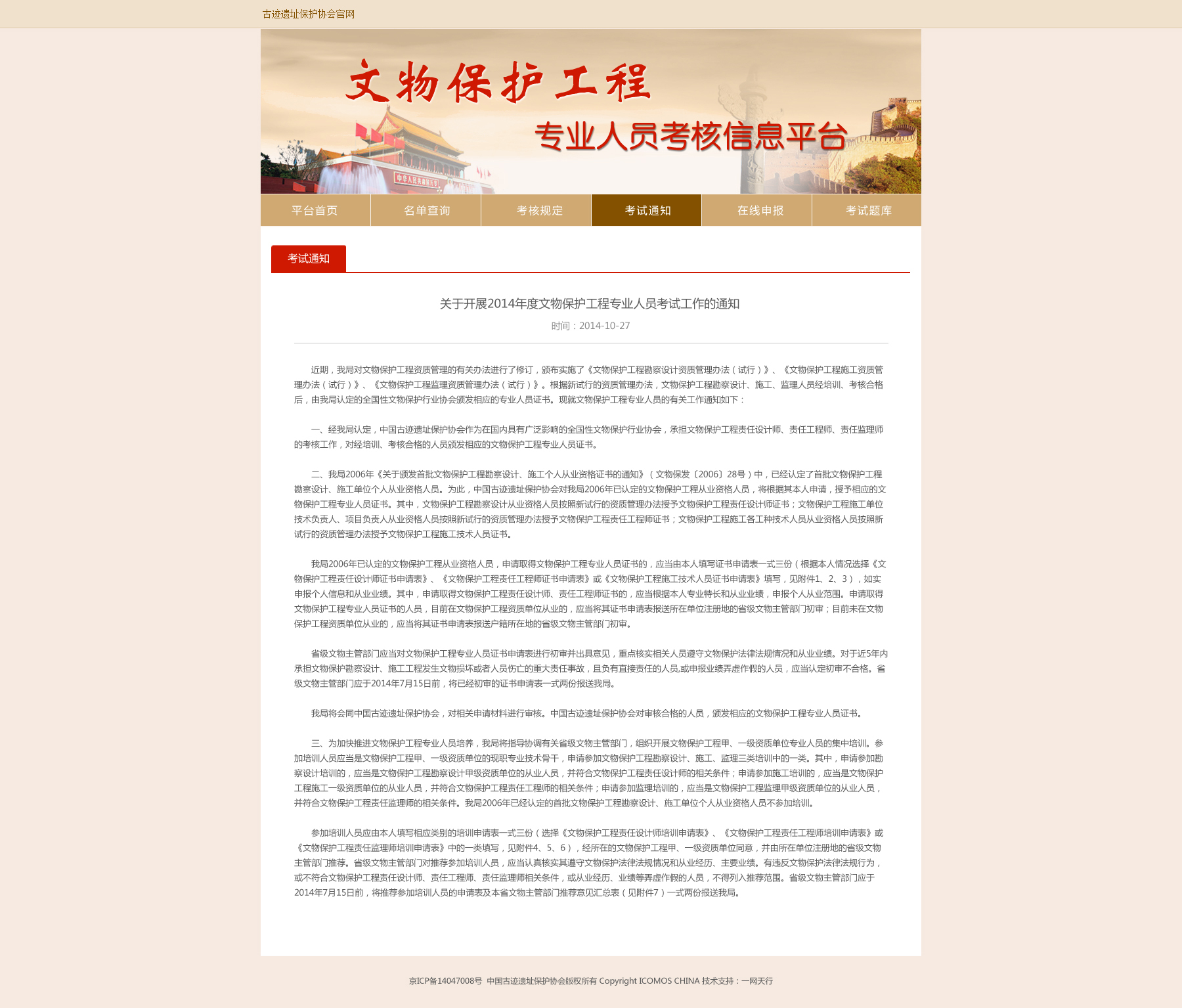 文物保護(hù)工程專業(yè)人員-考核證書信息平臺(tái)